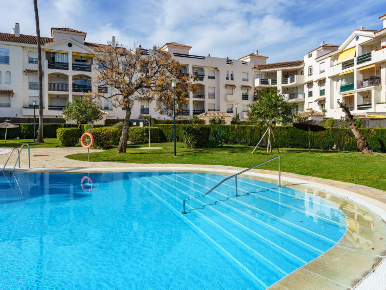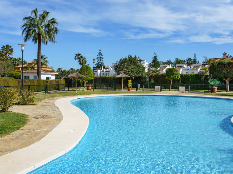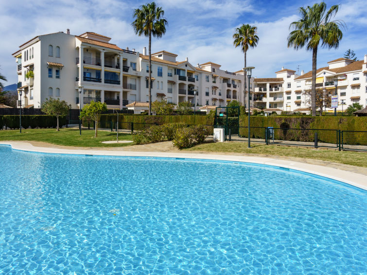 För gemensamt bruk: vacker trädgård för avkoppling, pool oregelbundet formad (140 – 140 cm djup, tillgång säsongsbunden: 01.Jan. – 31.Dec.) med salt-elektrolys. Dusch/toalett i poolområdet, barnbassäng, tennis. I anläggningen: hiss. Gemensamt garage nr 112 allmän parkering på gatan. Stormarknad 500 m, köpcentrum 2 km, restaurang, bar 100 m, bageri 500 m, café, område endast för gående, ölservering 100 m, busshållplats “Boulevard San Pedro” 1.1 km, sandstrand 100 m. Notera: lämplig för barnfamiljer. Nattbevakning på området. Lugnt och tyst område. Tystnad och gott uppförande förväntas.