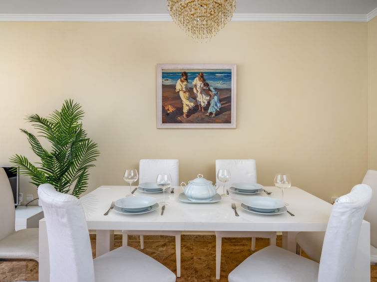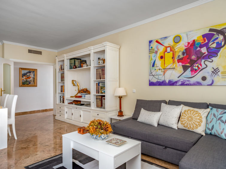 I huset: centralvärme, luftkonditionering, tvättmaskin, torktumlare. Parkering. Affär 100 m, stormarknad 300 m, köpcentrum 100 m, restaurang 150 m, bar, bageri, café, område endast för gående 100 m, busshållplats “Boulevard San Pedro” 250 m, sandstrand 900 m. Golfbana (18 hål) 2 km. Notera: lämplig för barnfamiljer, babyutrustning (inkl.). Ägaren accepterar inga ungdomsgrupper. 24-timmars övervakning. Lugnt och tyst område. Tystnad och gott uppförande förväntas.